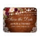 Rustic Wood String Lights Lace Watercolor Burgundy Marsala Floral Save the Date Magnet