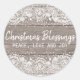 Very pretty rustic sticker begins with a light wood plank background. White lace and tiny white stars creates a top and bottom border. Christmas Blessings is written in the centre with Peace, Love and Joy just below. You can easily edit the text to include your own greeting and blessings.