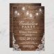 Rustic Wood Lace String Lights Graduation Party Invitation