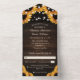 Custom rustic wood and sunflower wedding all in one wedding invitations.