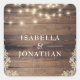 Rustic Wood, Lace & String Lights Wedding Square Sticker