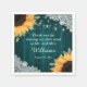 Decorate your teal rustic wedding party with these elegant botanical wedding napkins featuring sunflowers and greenery on a teal wood and lace background adorned with string lights.