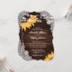 This rustic sunflower wedding invitation featuring sunflowers and rustic lace on a barn wood background is perfect for inviting your guests to your rustic wedding party inspired by sunflower flowers.