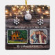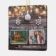 Rustic Wood Lights 2 Photo New Home with a wood background, snowflakes, primitive stars and fairy lights features "1st Christmas in Our New Home", Family Name, address and year. Ornament also features 2 of your favourite photos. Our ornament features a photo of a home and family photo. Ornament is part of a collection.