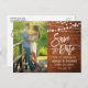 Modern Brush Script, Rustic Wood, String Lights Save The Date Engagement Couple Photo Postcard