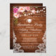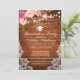Rustic Wood, String Lights and Lace Graduation Party Invitation Card - Pink Floral
