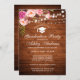 Rustic Wood Lights Graduation Party Invitation - Pink Floral