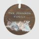 Rustic wood look Christmas photo ornament, with beautiful pastel winter floral accents. The front is ready for your personal photograph and year. The back has family name and is also ready to be personalised. Great way to commemorate your family Christmas, and great gift idea for the grand parents.