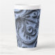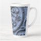 Rustic Wood Look Scroll Pattern on Blue Background Latte Mug