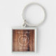 Customizable Monogram Names, Initial and Date in White Text - on a Wood-look background.