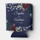 Rustic Wood Marsala & Navy Blue Flowers Can Cooler