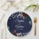 Rustic Wood Marsala & Navy Blue Flowers Paper Plate