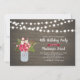 Celebrate your special day with this stylish birthday invitation. This design features string lights, mason jar & flower bouquet on a rustic wood background.