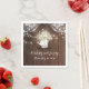 Rustic country wedding paper napkins with mason jar, baby's breath flowers, lace, and string lights
