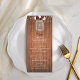 This rustic country wood floral boho wedding menu card features a dark brown wood background, string lights on top, and the names of the bride and groom in a mason jar decorated with a burgundy and blush watercolor bouquet. Provide your guests with menu option by changing the text easily with the templates.