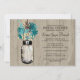 Perfect for a country style Bridal Shower or maybe you just love Mason Jars for any event! Mason Jar hanging on a hook filled with wildflowers. Mason Jar hanging on a hook filled with country wildflowers. A Rustic Tan Barn Wood Background with the hanging Mason Jar and wildflowers in colours Teal, Light Curry Yellow, Aruba Blue and Rust Brown. If you have any questions on this design or want a colour change please email me paula@labellarue.com Also check for the Wedding Suite, INVITATION, RSVP, RECEPTION and GUEST SEATING Cards to match!