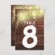 Rustic country wedding wood mason jar string of lights tree branch with green leaves wedding table number card. The glowing string of lights illuminate the green leaves against a beautiful rustic dark brown wood. This rustic wedding design is customisable and perfect for your beautiful outdoor country wedding or western wedding.