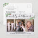 Rustic Wood Merry Christmas 3 Photo Holiday Moving Announcement Postcard