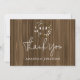 This stylish & elegant thank you card features a boho white and golden leaf wreath on a rustic wood background with white letters. A classy, modern and chic way to say thank you to your guests for celebrating your special event with you.