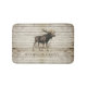 Rustic wood family name bath mat, for your cabin, cottage. Walking moose against wood background. Customize with your text.