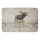 Rustic wood family name bath mat, for your cabin, cottage. Walking moose against wood background. Customize with your text. Large bath mat.