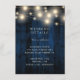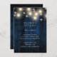 Rustic Wood Navy String Lights Wedding Reception Enclosure Card
