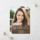 A rustic country brown wood ombre script graduate with 4 photos graduation announcement. Add your message at the back.