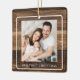 Rustic Wood Our First Christmas 2 Photo Ceramic Ornament