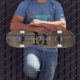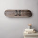 Rustic Wood Pattern Monogram Script Name Skateboard