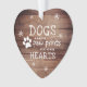 Honour your beloved pet's memory with this heartwarming keepsake Christmas ornament. A perfect gift for your friends, family or yourself. The wording reads "Dogs leave pawprints on our heart" with a rustic wood background. Features a large photo of your pet on the reverse.