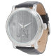 A watch with a silvery grey rustic weathered wood background personalised with your initials makes a great gift for any man. When you personalise the initials leave a space between the initials to get the effect you see in the example.