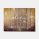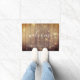Elegant personalised family name doormat featuring your established date set in classic white typography on a rustic wood panels background with the message "welcome" set in an elegant script white text. Designed by Thisisnotme©