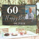 Rustic Wood Photo 60th Birthday Party Banner. Great sign for the 60th birthday party with a custom photo, text in trendy script with a name. The background is dark wood texture and the text is in white colour. Personalise the banner with your photo, your name and the age and make your own birthday party banner.