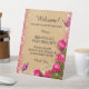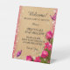 Rustic Wood Pink Floral Butterfly Wedding Safety Pedestal Sign