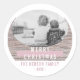 Rustic Wood Pink Merry Christmas Family Photo Classic Round Sticker
