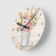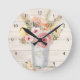Rustic Wood Pink Roses Floral Bouquet Pampas Grass Round Clock