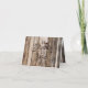 Rustic country western wood planks with heart etching and linen-look texture with stitches thank you card design.