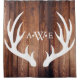 Deep brown rustic wooden planks shower curtain with white deer antlers silhouette and your personalised monogram letters. This shower curtain should definitely be a staple in any rustic chic bathrooms! Go farmhouse glam with his classic country design.