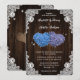 Rustic Wood Purple and Blue Floral Hearts Wedding Invitation