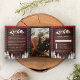 Rustic Wood Red Buffalo Plaid Mountain Wedding Tri-Fold Invitation