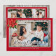 Rustic Wood Red Family 4 Photo Merry Christmas Holiday Card