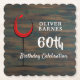 Rustic Wood Red Wine 60th Birthday Party Paper Coaster. Birthday coaster with rustic dark wood background and abstract glass with red wine. The text is in a trendy white script and is easily customisable.