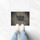 Cute country rustic, personalised welcome doormat perfect for a just married couple of newlyweds- Old, greyed, rustic barn wood background with darkened vignette edges. Personalised family name at the bottom in simple, whimsical letters. Centred is a rustic interlinked hearts with arrow that contains monogrammed initials like an old-fashioned tree carving. Rustic, romantic welcome door mat for couples. Country rustic style, monogrammed housewarming gift for married couple or unique wedding decor or wedding shower gift for the newlyweds. Note: All images are printed. Not actual wood. We have lots more rustic welcome doormats in our online Zazzle.com/angela65 shop.