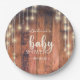 Keep your theme going with these rustic wood string lights baby shower paper plates.