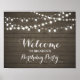 Rustic Wood & String Lights Birthday Party Welcome Sign