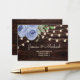 Rustic wood with twinkling string lights and periwinkle blue watercolor floral wedding registry enclosure card. Contact us for help with customisation or matching products.