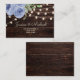 Rustic Wood String Lights Blue Floral Wedding Enclosure Card