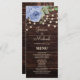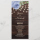 Rustic Wood String Lights Blue Floral Wedding Menu