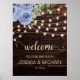 Rustic Wood String Lights Blue Floral Wedding Poster