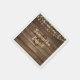 Personalised wedding reception napkins with a rustic, country, brown, weathered barn wood background and soft yellow string lights with first names and your wedding date. your wedding date in a country western hand-printed font and your name in a brush script font.